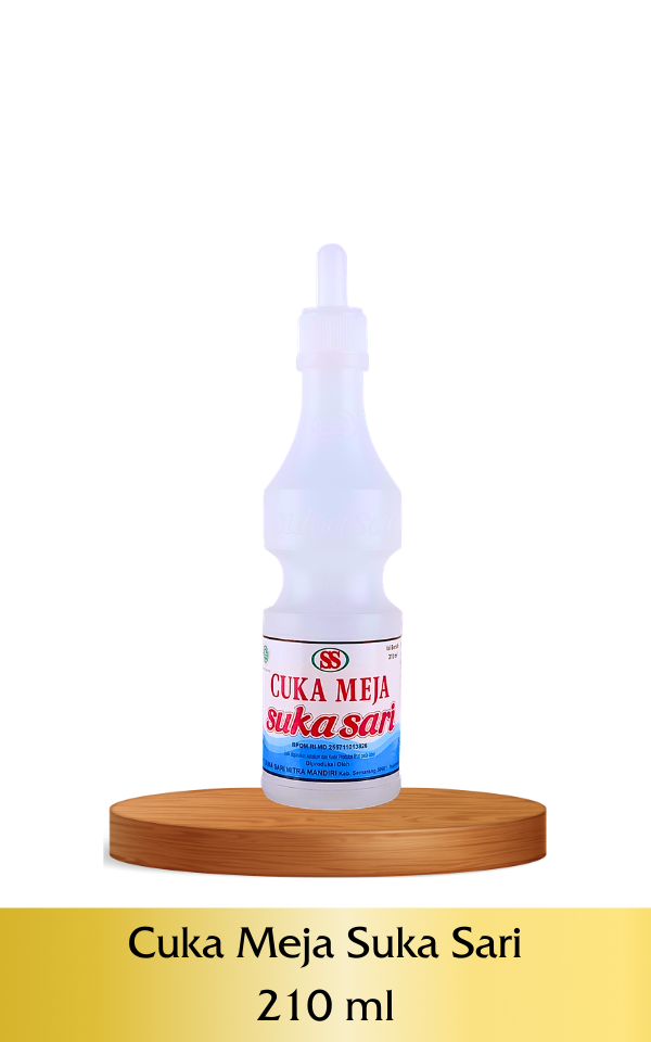 Sempurnakan kelezatan masakan Anda dengan Sukasari Cuka Makan kemasan 210 ml. Produk ini adalah pilihan favorit keluarga Indonesia karena ukurannya yang sangat ideal—praktis untuk diletakkan di meja makan, namun cukup awet untuk stok bumbu dapur sehari-hari.